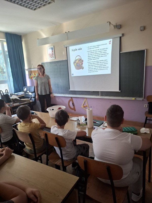 ŠKOLSKA SHEMA VOĆA I POVRĆA - DEGUSTACIJA I PREDAVANJE19.09.2025. 20:50 I ove je školske godine nastavljena provedba Školske sheme dodjelom besplatnih obroka voća, povrća, mlijeka i mliječnih proizvoda te edukativnim aktivnostima za djecu u osnovnim i srednjim školama.