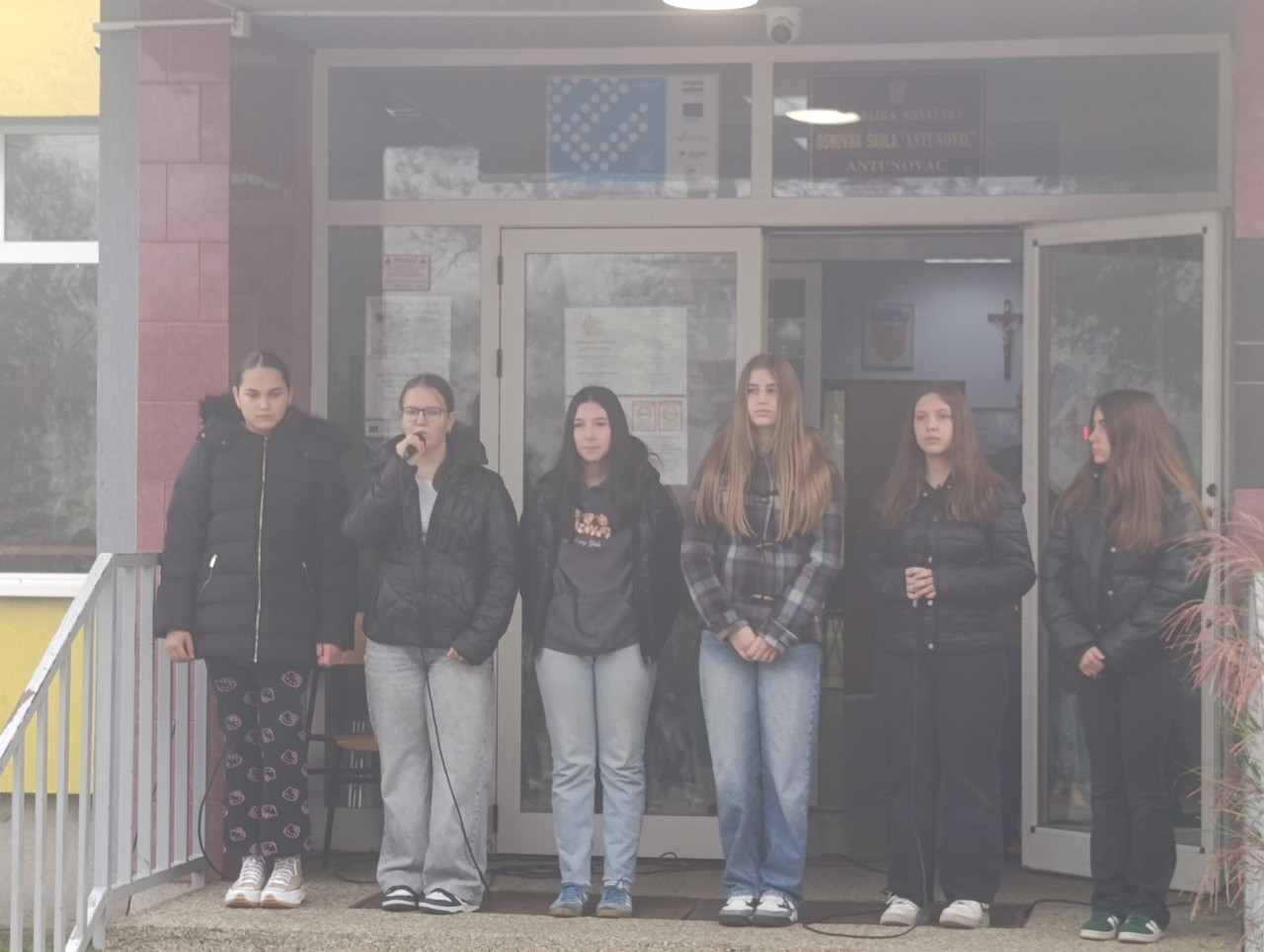 SJEĆANJE ZA ŽRTVU VUKOVARA14.11.2025. 21:56 U petak 14. studenoga 2025. u našoj smo školi obilježili ratna stradanja vojnika i civila u Domovinskom ratu u Vukovaru. Tom su prigodom učenici 7. i 8. razreda izveli recital Vukovar – grad heroj. Učenici su toga dana donijeli i svijeće, a dio svijeća donirala je općina Antunovac.